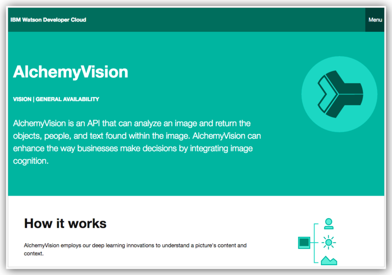 同サービスのAlchemy Visionは、2016年05月20日に、こちらのサービスにマージされたようです。
