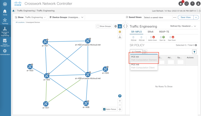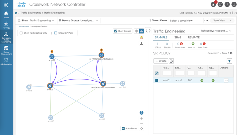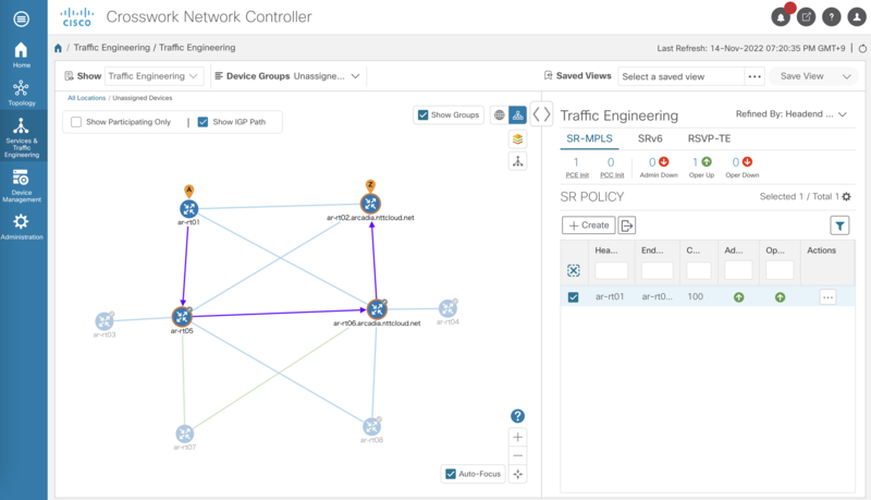 GUI から SR Policy の状態を確認できます。