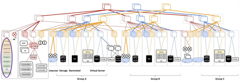 クラウド内のネットワーク構成はこのようになっています。(紫で印をつけた部分がSDNコントローラ)