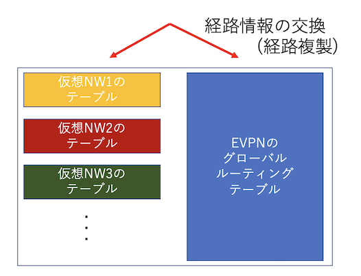 コントローラが保持している経路(BGP route)には、複数のpathを持つものがあります。 例えば3つのRRから同じ経路を受け取った際、src addrだけ異なる3つのpathがrouteに登録されます。 ある1つのrouteの複製は、含まれるpathごとにループで行われる実装となっていて、その中でpathの複製先EVPNテーブルを選定していました。 (pathの中の拡張コミュニティに含まれるRouteTarget等の情報からテーブルを探索し、複製先テーブルリストを作っています。)