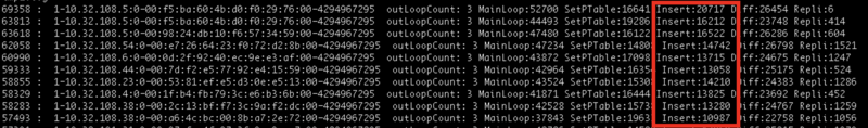 この効果は、多量(ほぼ全て)のVRFテーブルに複製する必要があるEVPN Type1経路において顕著に現れました。 (EVPN Type1経路はマルチホーミングの情報を広告するためのものです。)