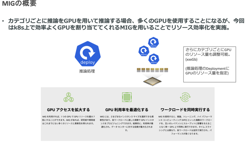上記での問題についてマルチインスタンスGPUを用いて解決しています。
