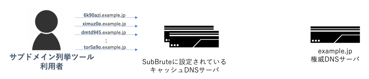 「SubBruteについて」内では説明を省略していますが、SubBruteがDNSクエリを実行する際は、予め設定されているキャッシュDNSサーバを使用します。